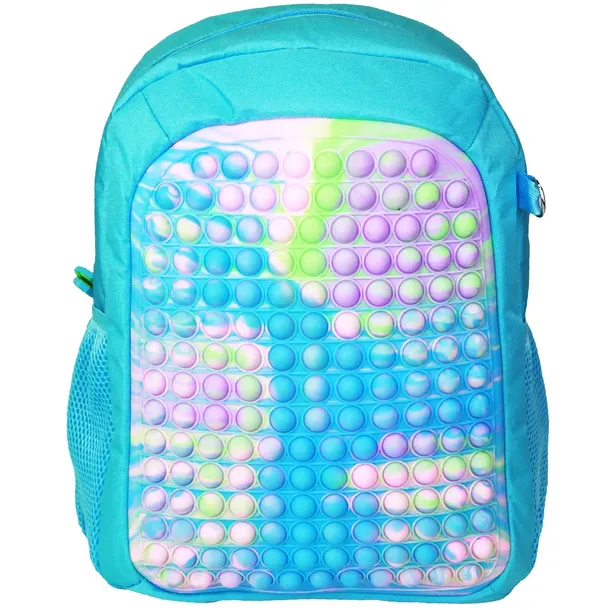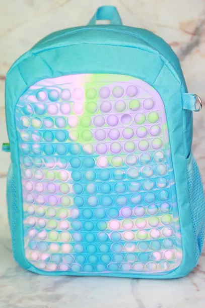 Piękny plecak POP IT w kolorze niebieskim. Plecak posiada jedną główną komorę, w której znajduje się mniejsza kieszonka na drobiazgi. Zapięcie na zamek błyskawiczny. Regulowane paski. Dwie kieszenie po bokach, idealne na napoje.
