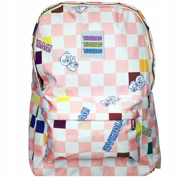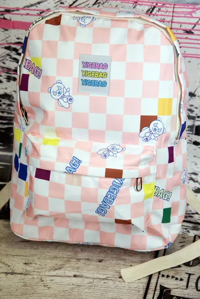Cudny inny niż wszystkie plecak w różówo-białą szachownicę. Plecak posiada jedną główną komorę, zasuwaną mniejszą kieszonkę oraz dodatkową kieszonkę z tyłu plecaka. Zapięcie na zamek błyskawiczny. Regulowane paski.