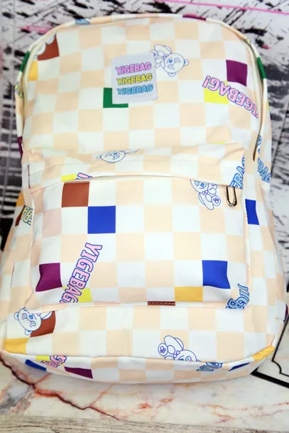 Cudny inny niż wszystkie plecak w miodowo-białą szachownicę. Plecak posiada jedną główną komorę, zasuwaną mniejszą kieszonkę oraz dodatkową kieszonkę z tyłu plecaka. Zapięcie na zamek błyskawiczny. Regulowane paski.