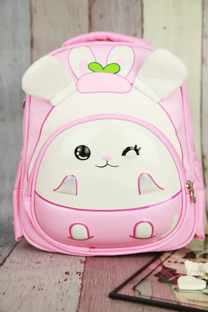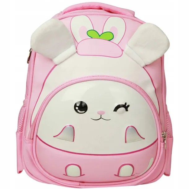 Piękny plecaczek w kolorze różowym. Plecak z przodu posiada sztywną kieszeń na drobiazgi, na której jest nadruk 3D.