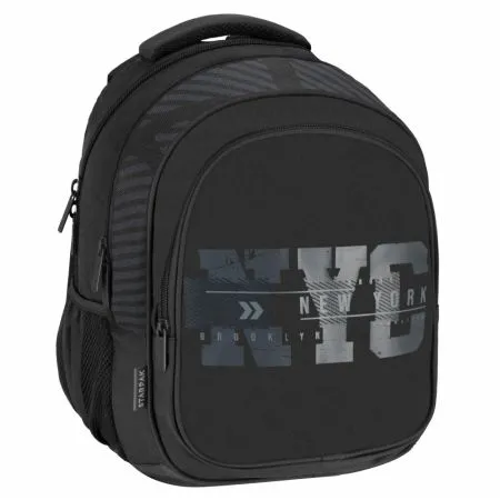Zalety: plecak składa się z 1 dużej komory i 2 obszernych przednich kieszeni, w środku komór znajdują się organizery, 2 boczne wzmocnione kieszenie siatkowe na butelkę z napojem, wytrzymałe zamki błyskawiczne, plecak wykonany z mocnego materiału poliestrowego 600D specjalnie powlekanego wodoodporną warstwą, ergonomiczne plecy i szelki ,plecy z systemem wentylacji dla większego komfortu, grube, miękkie szelki chronią ramiona, regulowane szelki pozwalają dopasować plecak do wzrostu i budowy ciała, uchwyt w środku usztywniony, pozwalając zawiesić plecak na wieszaku lub wygodnie nosić go w ręce. Plecak w czarnej kolorystyce. Wygodny i funkcjonalny plecak szkolny STARPAK z młodzieżową grafiką z serii NYC. Użytkowanie takiego plecaka to czysta przyjemność. Zapoznaj się również z innymi produktami STARPAK dedykowanymi młodzieży Wykonany z trwałego materiału. Plecak jest wyrobem tekstylnym. Przeznaczony dla dzieci w wieku: 3 . Wymiary produktu wys. x szer. x gł. cm : 47x34x20, waga produktu kg : 0,80 kg. Plecak pakowany w folijkę.
