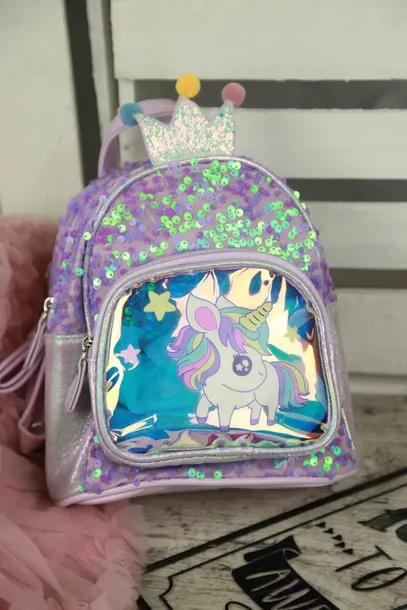 Cudowny plecaczek wykonany z niezwykłą starannością i dbałością o każdy detal. Zachwycająca kolorystyka, pięknie mieniąca koronaoraz cekiny przyciągną wzrok każdej małej księżniczki.