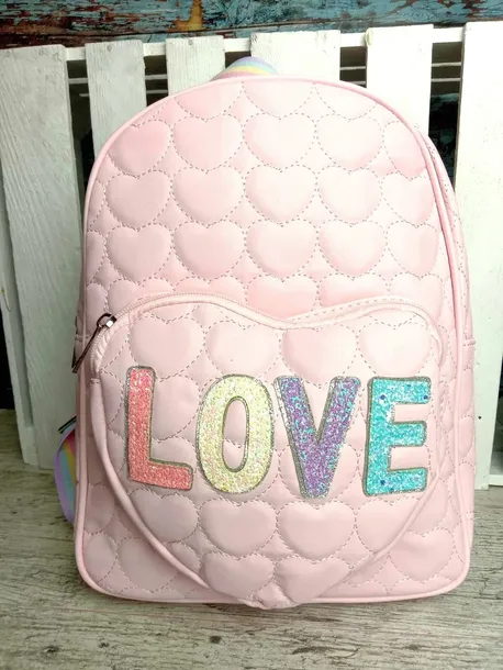 Plecak pikowany z kolorowym, mieniącym napisem LOVE❤