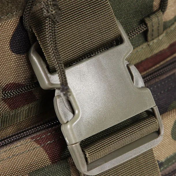 Duże panele modularne w systemie MOLLE / PALS umieszczone na froncie i bokach plecaka umożliwiają rozbudowę o dodatkowe kieszenie. Paski modularne na froncie plecaka zostały obszyte rzepem do mocowania naszywek. Taśmy kompresyjne zmniejszają gabaryty plecaka i zabezpieczają przed przemieszczaniem się ładunku. Nowoczesne klamry VTX z mocnego tworzywa POM.