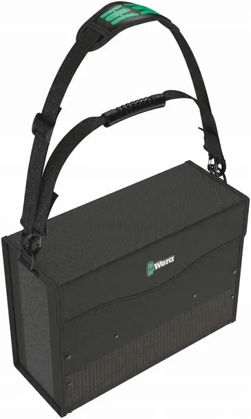 Kompaktowa budowa oraz rzepy sprawiają, że neseser tekstylny Wera 2go 2XL z bardzo głębokimi przegródkami jest idealnym rozwiązaniem zapewniającym komfort podczas transportu narzędzi i umożliwiającym dostosowanie do indywidualnych potrzeb. Umieszczone wewnątrz i na zewnątrz rzepy gwarantują efektywne wykorzystanie przestrzeni. Dzięki temu niewiarygodnie dużo narzędzi mieści się w neseserze oraz w etui i torbach, które można zamocować na zewnątrz. Wera 2go 2 to gwarancja lekkiego bagażu, ponieważ w neseserze znajdują się tylko niezbędne narzędzia. Wytrzymały i odporny na odkształcenia materiał zabezpiecza przewożone narzędzia przed uszkodzeniem i wilgocią oraz zwiększa trwałość nesesera. Pasek na ramię z nakładką i regulowaną szerokością oraz fakt, że w trakcie przemieszczania się neseser zawsze znajduje się blisko ciała, zwiększają komfort, pozostawiając wolne ręce podczas transportu. Neseser zawiera 1 pojemnik tekstylny Wera 2go 4 do wkrętaków i innych narzędzi z indywidualnie regulowaną przegródką z rzepem. W neseserze z łatwością mieszczą się 4 takie pojemniki.