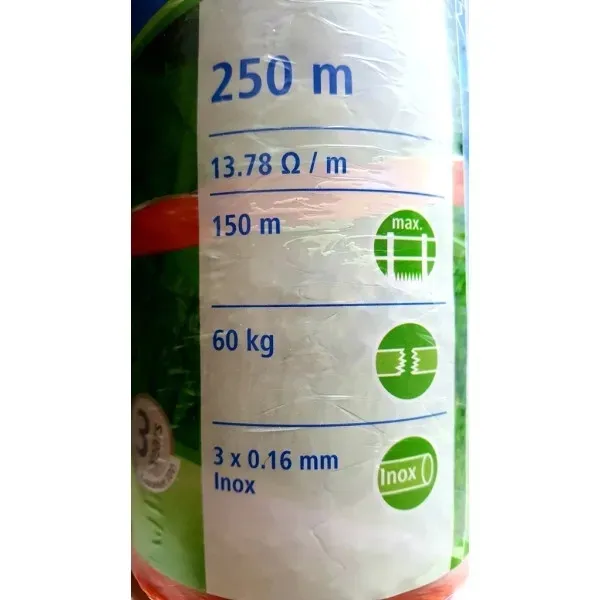 Wysokiej jakości linka o długości 250 metrów. Służy ona do budowy ogrodzenia elektrycznego.