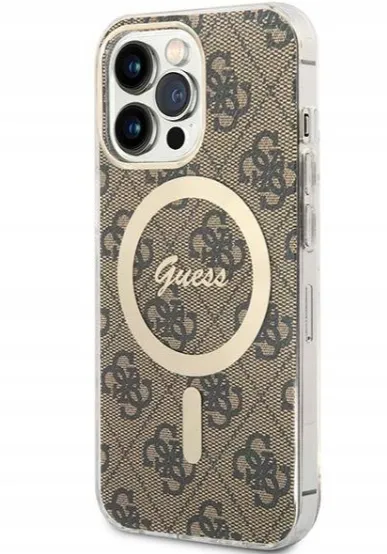Plecki Guess do iPhone 14 Pro + Magsafe brązowy
