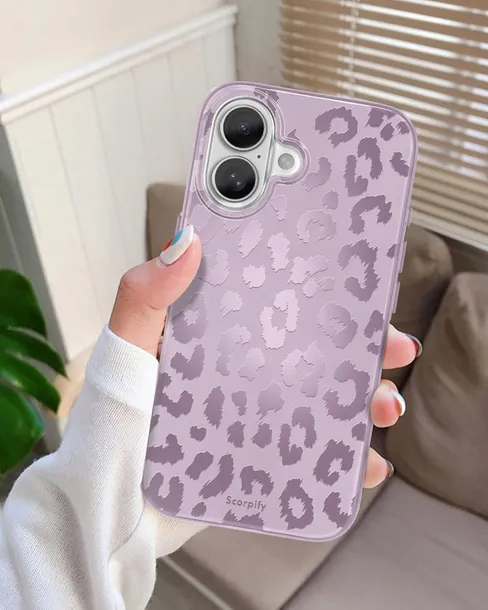 Etui SCORPIFY na iPhone'a 16 [zgodne z MagSafe] z matowym wzorem lawendowego lamparta, urocze magnetyczne etui na telefon dla kobiet i dziewcząt, fioletowo-neutralna estetyka, smukły zderzak