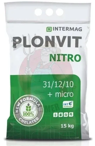 Krystaliczny, rozpuszczalny w wodzie nawóz NPK z mikroelementami o wysokiej koncentracji składników pokarmowych z przewagą azotu. Szczególnie polecany w okresach intensywnego wzrostu i rozwoju roślin. Przez wpływ na intensyfikację fotosyntezy wspomaga prawidłowy wzrost i rozwój organów wegetatywnych i tym samym pozytywnie oddziałuje na plonowanie roślin. Plonvit Nitro wzbogacony jest w formułę CHAAT, która zwiększa przyswajalność składników pokarmowych oraz działa biostymulująco.