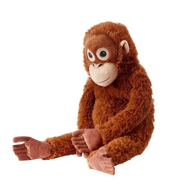 Pluszak orangutan marki Ikea z kolekcji Djungelskog może wisieć na biodrze lub plecach, tak jak prawdziwe małpy wspinają się i wiszą na drzewach w lasach tropikalnych.
