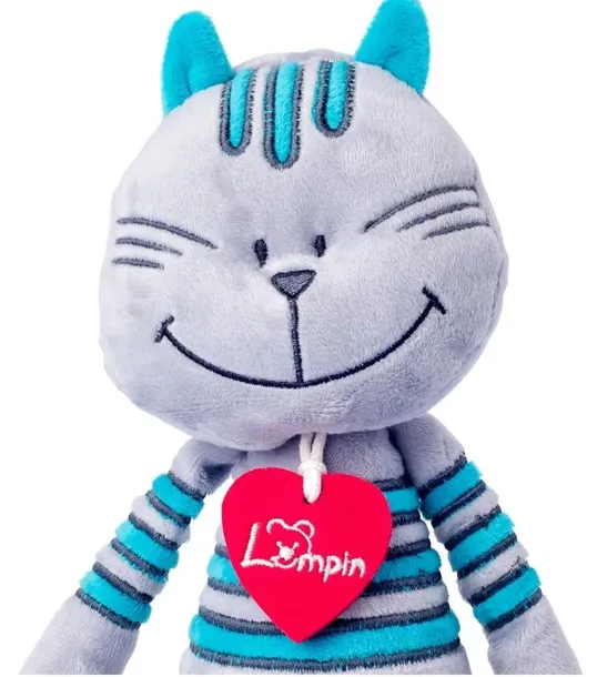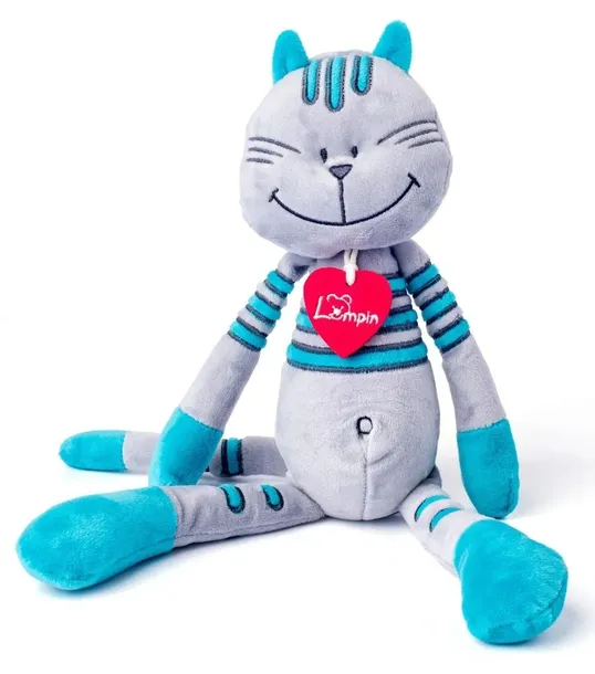 Kolejny ciekawy kot tym razem prosto z Austrii. Mięciutkie futerko kotka jest szare w turkusowe paski. Dodatkową ozdobą jest serduszko z grubego filcu na szyi kotka. Długie łapki i szeroki uśmiech to jego cechy charakterystyczne.