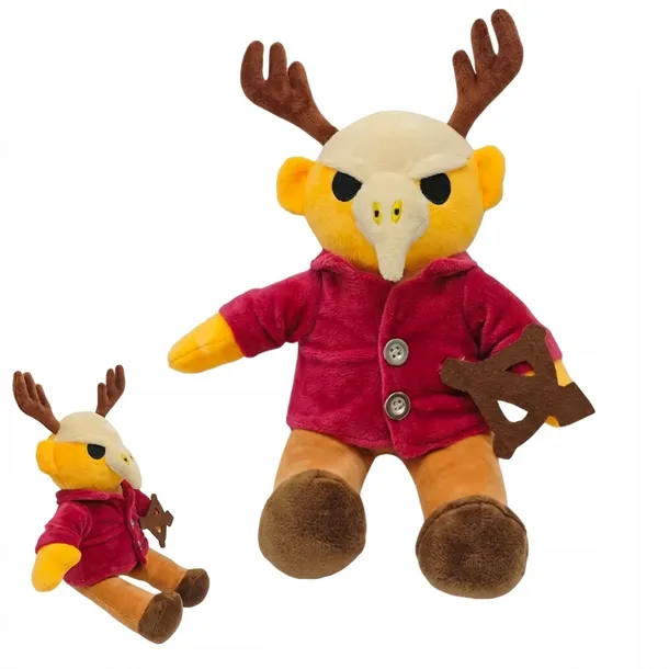 - Prosto z Robloxa: Design maskotki jest wierny oryginałowi z gry – od charakterystycznej maski po bordową kurtkę z guzikami.