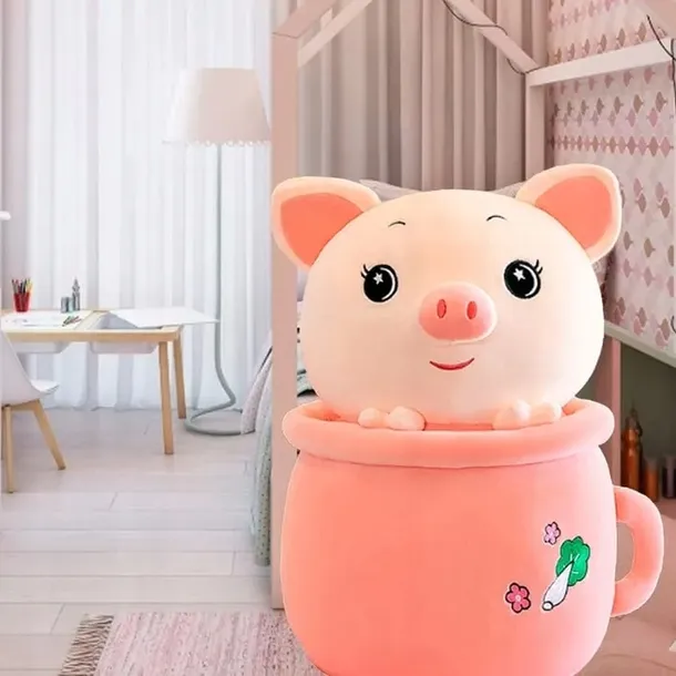 PLUSZOWA MASKOTKA ŚWINKA W KUBKU – UROCZA PRZYTULANKA 40 CM! ☕✨