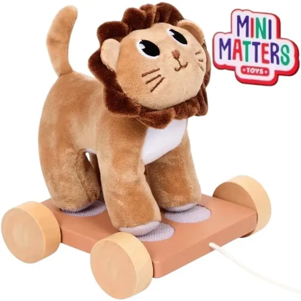 Pluszowe zwierzątko na drewnianym wózku do ciągnięcia PRZYTULANKA LEW
