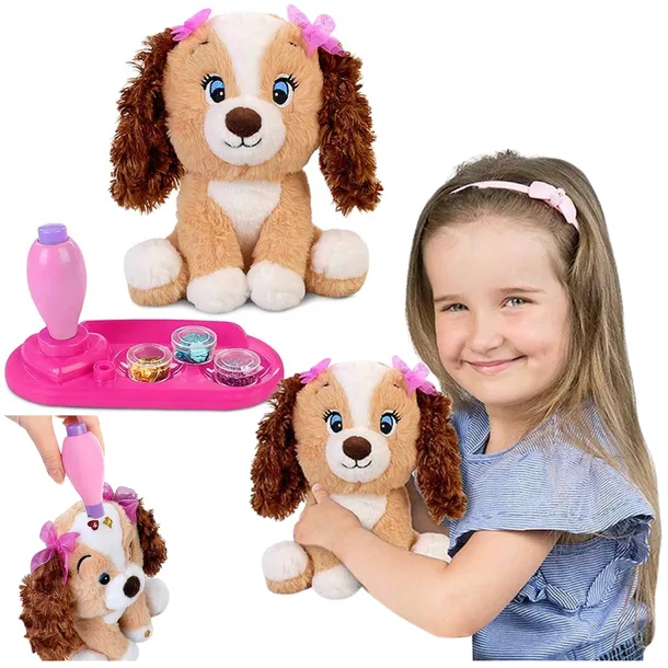 - Pluszowy piesek z funkcją szczekania: Uroczy biało-brązowy piesek, którego dziecko może udekorować według własnych pomysłów.
