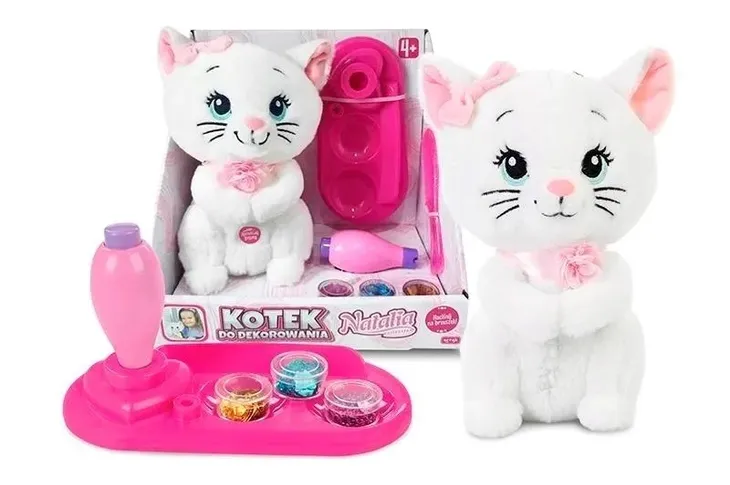 Odkryj kreatywny świat stylizacji z uroczym Pluszowym Kotkiem do Dekorowania od Natalia Collection! Ten mięciutki, biały kotek czeka, aby Twoje dziecko przemieniło go w małe dzieło sztuki, dekorując jego futerko mieniącymi cekinami. Idealny dla małych stylistów, którzy kochają zwierzęta i blask!