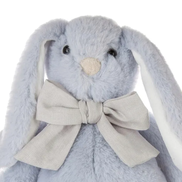 Pluszowy króliczek w kolorze niebieskim o wysokości 30 cm to doskonały towarzysz zabaw dla każdego dziecka. Wykonany z miękkiego poliestru zapewnia komfort, bezpieczeństwo oraz stylowy akcent w dziecięcym pokoju. Długie uszy i elegancka lniana kokardka nadają mu wyjątkowego uroku.