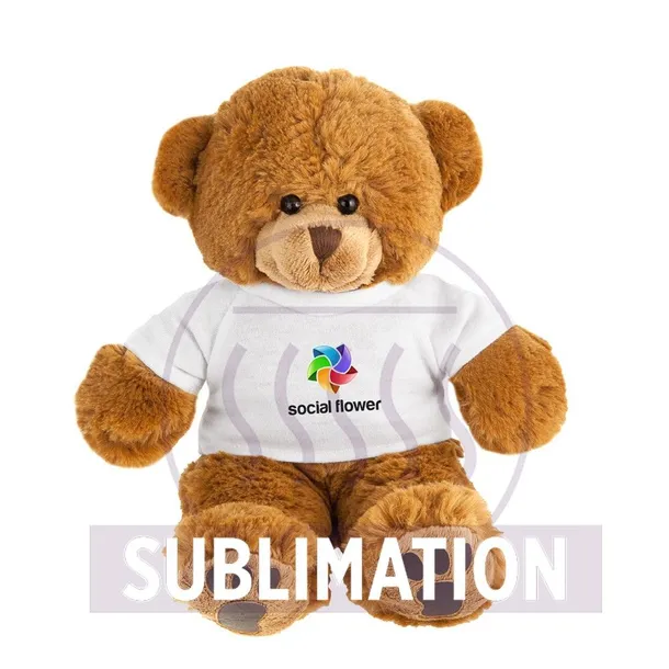 Brązowy miś z białą koszulką pod nadruk (koszulka pakowana oddzielnie), na życzenie można wymienić białą koszulkę na żółtą z weluru