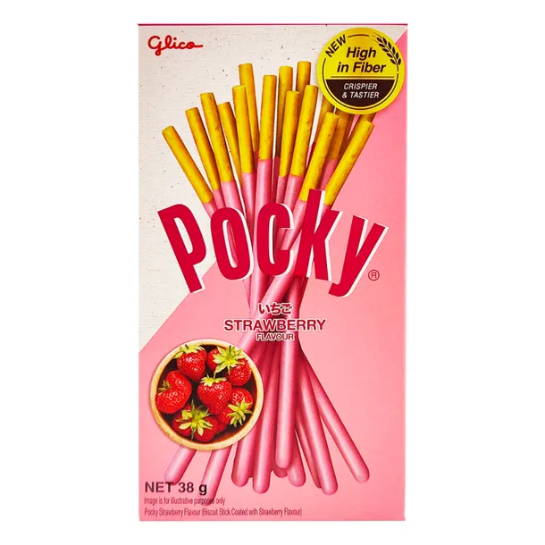 Pocky Strawberry Flavour to chrupiące paluszki biszkoptowe oblane delikatną, truskawkową polewą o słodkim, owocowym aromacie. Kultowa japońska przekąska, która łączy lekkość ciasteczka z kremową słodyczą owocu, tworząc idealną harmonię smaku.