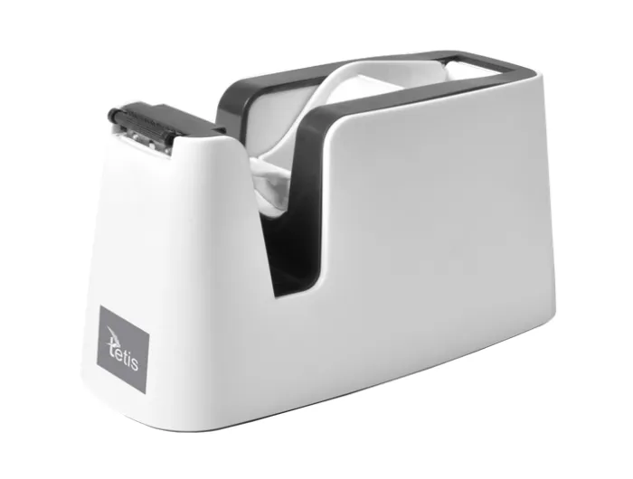 Podajnik do taśmy klejącej o szerokości do 18mm. Wykonany z tworzywa sztucznego. Solidna obudowa, łatwe odcinanie taśmy za pomocą ostrego ostrza. Antypoślizgowy spód. Opakowanie PP