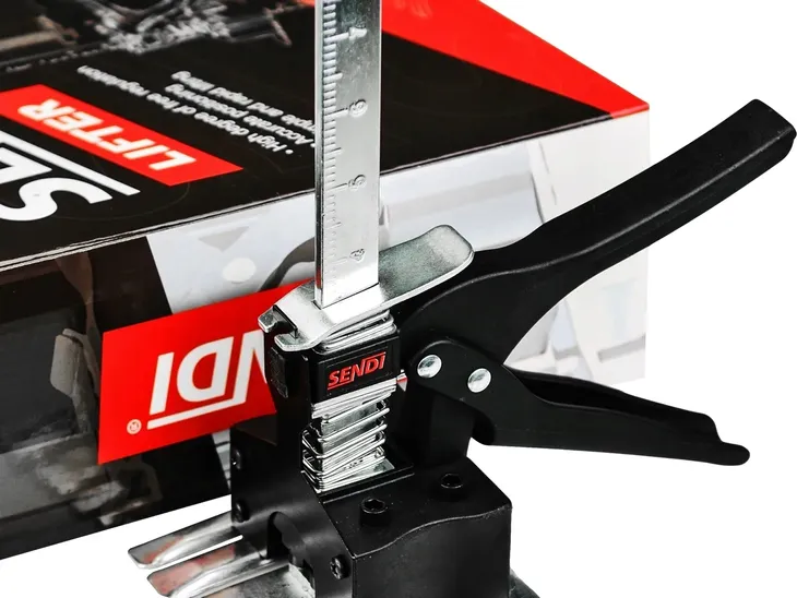 Podnośnik SENDI LIFTER to niezastąpione narzędzie ręczne do precyzyjnego pozycjonowania - prostego i szybkiego podnoszenia i opuszczania płyt ceramicznych, szklanych, marmurowych, a także ram drzwi czy mebli. Posiada wysokość podnoszenia do 23 cm i maksymalną nośność do 120 kg, co czyni go niezwykle wszechstronnym urządzeniem.