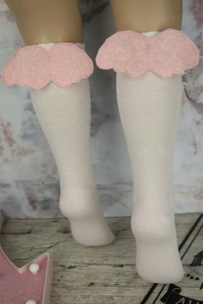 Przepiękne, delikatne podkolanówki w kolorze różowym. Szczególnego uroku i unikatowości dodają subtelne skrzydełka, które pięknie się mienią.