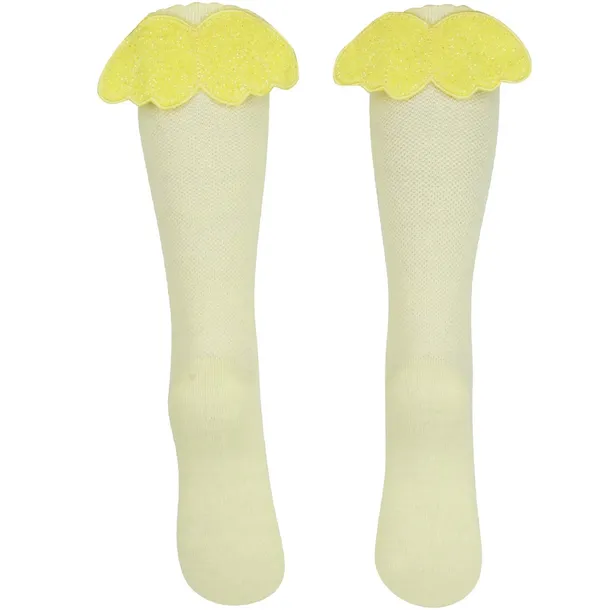 Przepiękne, delikatne podkolanówki w kolorze CYTRYNOWYM. Szczególnego uroku i unikatowości dodają subtelne skrzydełka, które pięknie się mienią.