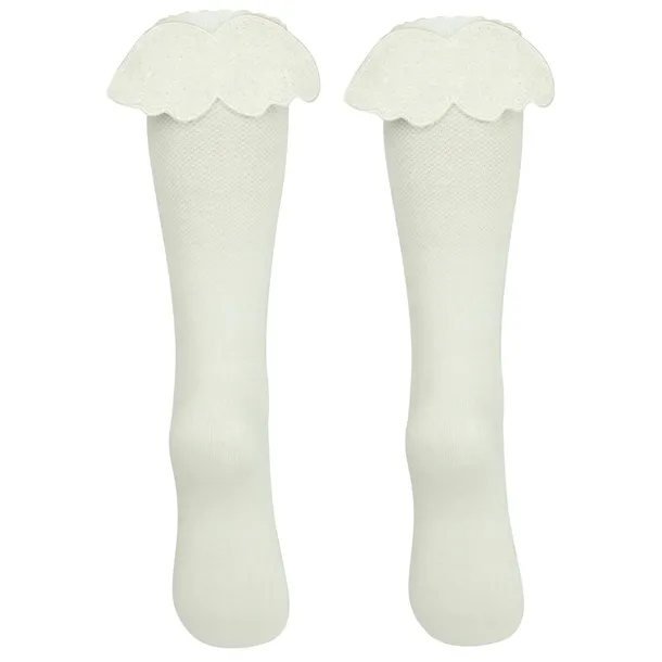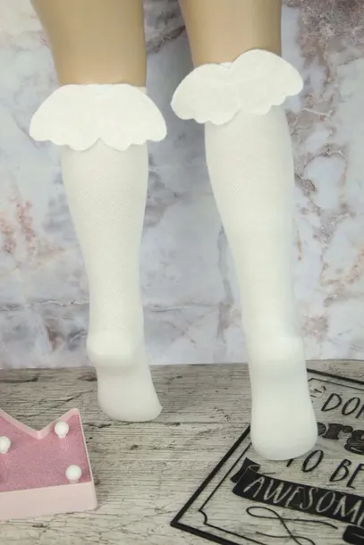 Przepiękne, delikatne podkolanówki w kolorze ecru. Szczególnego uroku i unikatowości dodają subtelne skrzydełka, które pięknie się mienią.