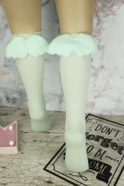 Przepiękne, delikatne podkolanówki w kolorze miętowym. Szczególnego uroku i unikatowości dodają subtelne skrzydełka, które pięknie się mienią.