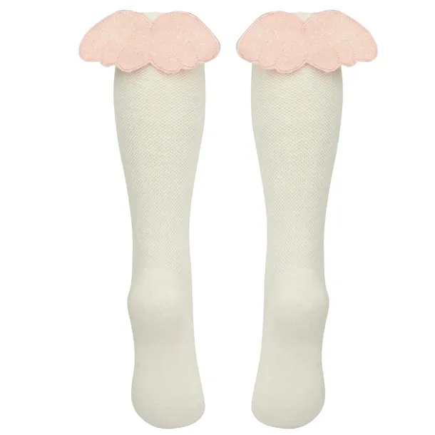 Przepiękne, delikatne podkolanówki w kolorze różowym. Szczególnego uroku i unikatowości dodają subtelne skrzydełka, które pięknie się mienią.