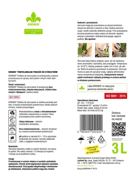 Podłoże do storczyków przeznaczone jest dla szerokiego spektrum storczyków i innych roślin epifitycznych. Podłoże do storczyków to kompozycja frakcjonowanej kory śródziemnomorskiej, chipsów, włókien kokosowych oraz Sphagnum wzbogacona makro- i mikroelementami przeznaczona do upraw storczyków i większości roślin storczykowatych w pojemnikach.