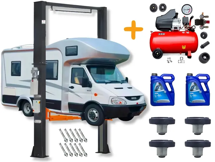 PODNOŚNIK DWUKOLUMNOWY SAMOCHODOWY DO BUSÓW 6T ŁĄCZONY GÓRĄ AUTOMAT + OLEJ