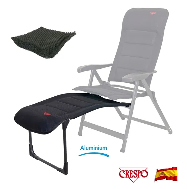 Wygodny i luksusowy składany podnóżek marki Crespo. Jest odpowiedni dla wszystkich pozycjonowanych krzeseł Crespo. Materiał jest oddychający i nie zatrzymuje wilgoci, dzięki temu krzesło schnie szybciej niż inne krzesła z tradycyjną piankową wyściółką.