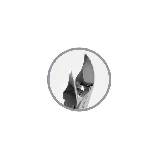 Półokrągłe ( boczne) z ostrą końcówką, bezpieczne polecane dla dzieci i osób dorosłych oraz seniorów. Wysokiej jakości cążki ze stali nierdzewnej.