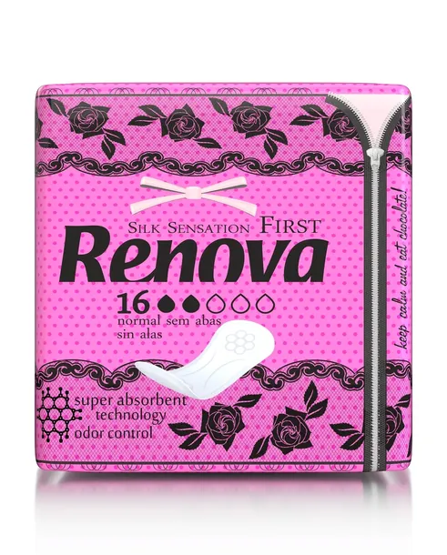 Ultracienkie podpaski z jedwabistą warstwą wierzchnią zapewniającą miękkość i wygodę na co dzień, aby zapomnieć, że ich używasz. Super chłonna, oddychająca i dopasowana do ciała podkładka ochronna FIRST ogranicza wilgoć i blokuje zapachy w warstwach wewnętrznych, dzięki czemu czujesz się komfortowo i swobodnie przez cały dzień. Bez sztucznych zapachów, aby chronić najbardziej wrażliwą skórę. Zabierz ze sobą swoje podpaski Renova i czerp jak najwięcej z dnia.
