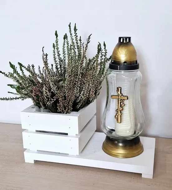 ✔️ Dedykowane miejsce na znicz, lampkę, aniołka lub inną dekorację, co umożliwia łatwe tworzenie spersonalizowanych stroików o wysokiej jakości wykończenia.