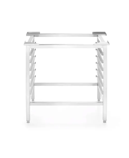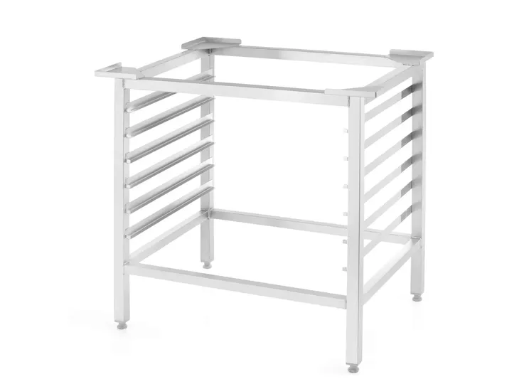Podstawę wykonano z wysokiej jakości, wytrzymałej stali nierdzewnej. Dodatkową zaletą podstawy jest 6 par prowadnic pozwalających na odstawienie pasujących do pieców blach z wypiekami.