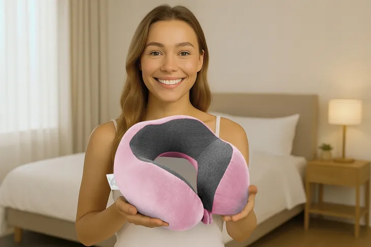 ➡️ Poduszkę podróżną z pianki memory, która idealnie dopasowuje się do kształtu szyi i głowy.