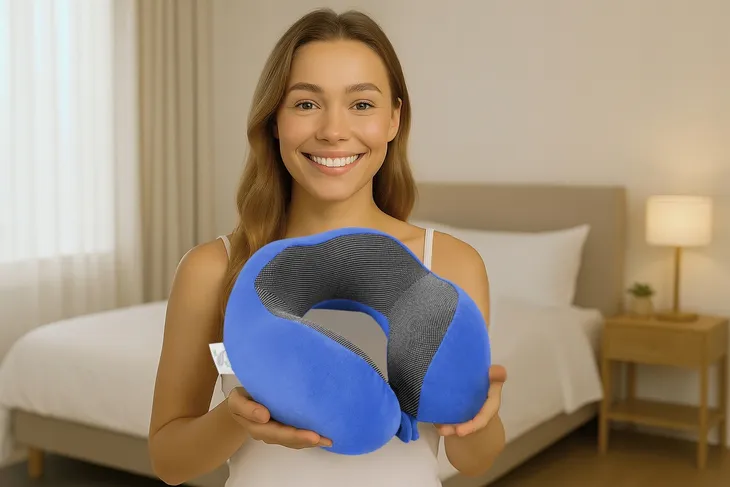 ➡️ Poduszkę podróżną z pianki memory, która idealnie dopasowuje się do kształtu szyi i głowy.