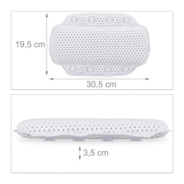 Nie ma nic lepszego na relaks niż ciepła kąpiel w wannie. Zafunduj sobie odrobinę czasu dla siebie i podaruj sobie optymalny komfort dzięki tej poduszce do kąpieli. Zamiast spoczywać na twardej krawędzi wanny, możesz oprzeć głowę na miękkiej piankowej poduszce do kąpieli. Poduszka pod szyję podtrzymuje głowę i zapewnia przyjemny relaks szyi. Przyssawki z tyłu przytrzymują poduszkę bezpiecznie na gładkiej powierzchni wanny.