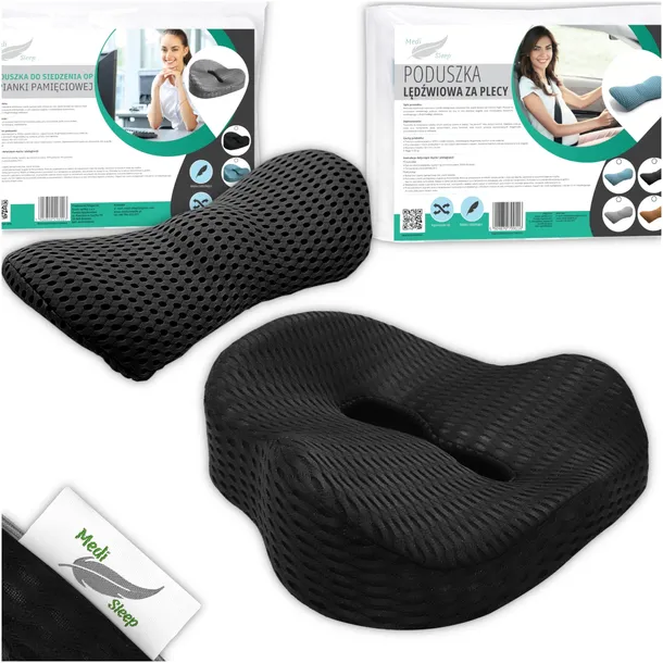 Poduszka do siedzenia zapewnia miękkość i stabilność, a lędźwiowa wspiera dolne plecy – razem sprawiają, że długie godziny przy biurku, w aucie czy w domu stają się znacznie wygodniejsze.