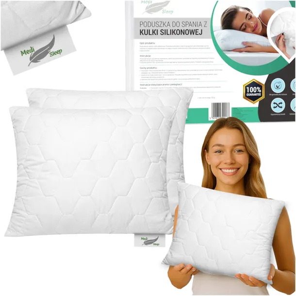 - 2 x Poduszka antyalergiczna 40x40 SPRĘŻYSTA do spania pikowana, wypełnienie kulka silikonowa od Medi Sleep.