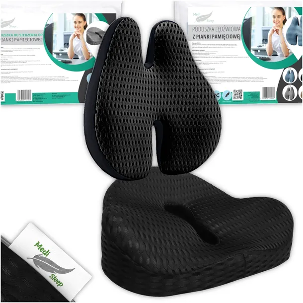 Poduszka do siedzenia zapewnia miękkość i stabilność, a lędźwiowa wspiera dolne plecy – razem sprawiają, że długie godziny przy biurku, w aucie czy w domu stają się znacznie wygodniejsze.