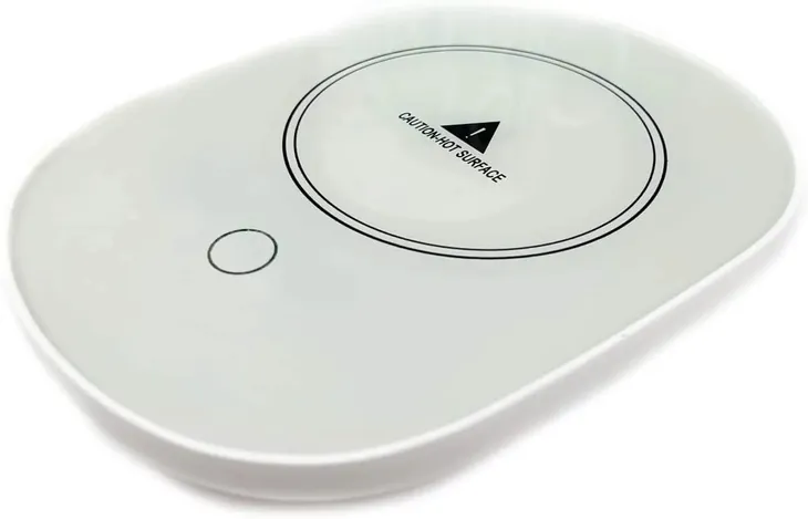Bezpieczeństwo: w przeciwieństwie do innych podgrzewaczy, ten posiada grawitacyjny przycisk bezpieczeństwa. Po umieszczeniu kubka przycisk z tyłu podgrzewacza grawitacyjnego zostanie naciśnięty, obracając płytkę. Po wyjęciu kubka urządzenie wyłączy się.