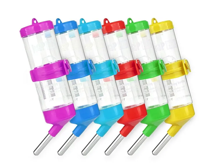 Plastikowe poidło mocowane na szczebelkach klatki za pomocą plastikowej obejmy lub drucika. Końcówka i kulka wykonane ze stali nierdzewnej, odpornej na obgryzanie. Kulka zapobiega wylewaniu się wody z poidła.