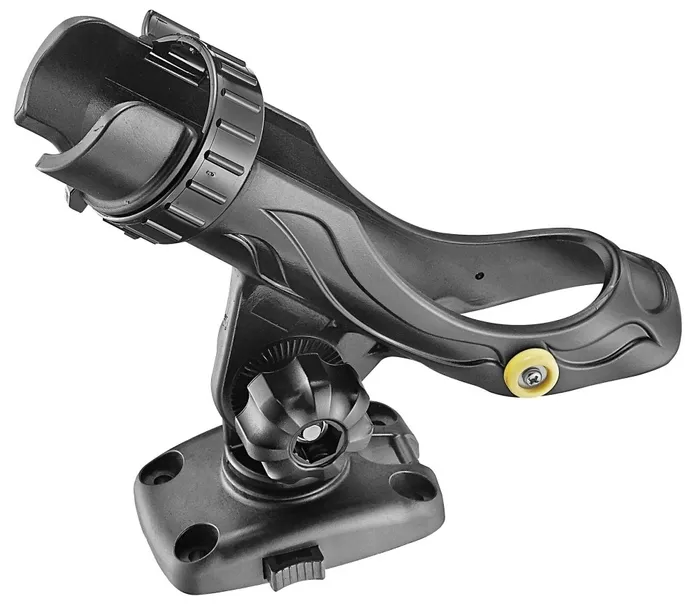 Uchwyt wędki wykonany z wytrzymałego tworzywa, odpornego na działanie wody morskiej i promieniowania UV. Wyposażony w podstawę z gniazdem przeznaczoną do przykręcenia bezpośrednio do poziomego elementu na łodzi. Zabezpieczenie uchwytu w gnieździe za pomocą przycisku, znajdującego się w podstawie. Zabezpieczenie wędki przed wypadnięciem z uchwytu za pomocą obrotowego pierścienia. Regulacja nachylenia wędki ze stabilizacją pokrętłem ze śrubą oraz możliwość obrotu 360 stopni.