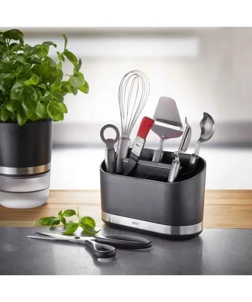 Ten stylowy pojemnik na przybory ma 10 przegródek na małe i duże pomoce kuchenne. Wyjmowany wkład ułatwia czyszczenie. Specjalnie zaprojektowana podstawa z antypoślizgowymi stopkami zapewniają stabilność.