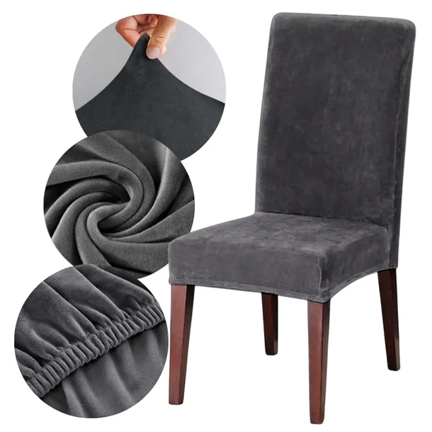 POKROWIEC NA KRZESŁO CIEMNY SZARY GRAFIT WELUR MIĘKKI UNIWERSALNY ELASTYCZNY Z GUMKĄ
