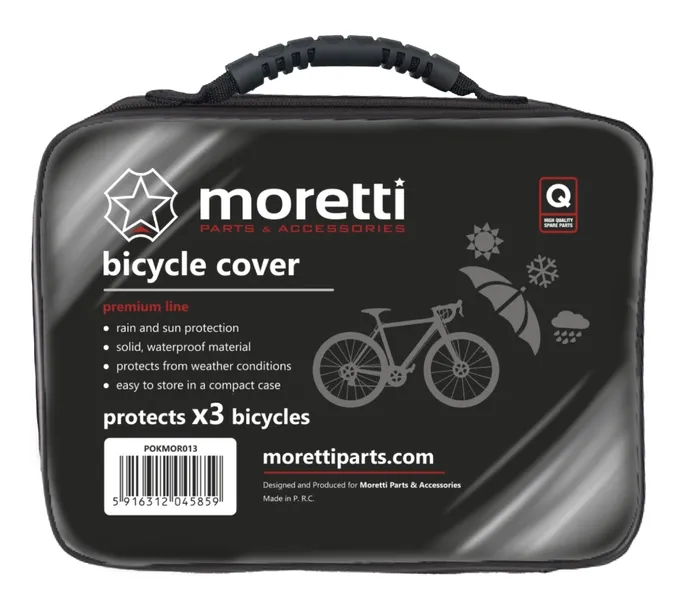 Pokrowiec na 3 rowery marki Moretti to idealne rozwiązanie dla osób ceniących sobie ochronę swoich jednośladów w każdej sytuacji. Wykonany z super trwałego i odpornego na czynniki atmosferyczne materiału, ten pokrowiec zapewnia skuteczne zabezpieczenie Twojego roweru przed deszczem, słońcem i uszkodzeniami mechanicznymi. Dzięki niemu możesz bez obaw pozostawić rowery na zewnątrz, mając pewność ich pełnej ochrony. Dodatkowo, specjalna tkanina zapewnia ochronę przed promieniowaniem UV, co zapobiega blaknięciu i utracie koloru struktury roweru.