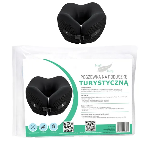 Pokrowiec na poduszkę turystyczną na szyję do spania MEDI SLEEP czarny